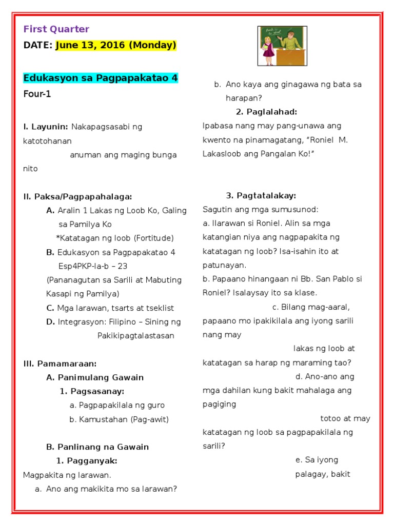 Katatagan ng Loob Fortitude Mga Kagamitan. Para sa akin upang bigyan ako ng. Monday June 12015 ESP IV 600-630 Aralin 1 Lakas ng Loob KoGalingsa Pamilya Ko ILayunin.