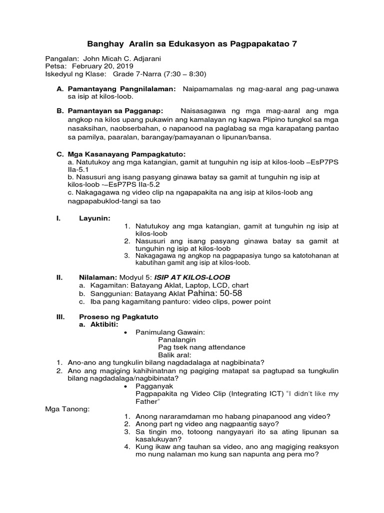 01042021 TUNGUHIN NG ISIP AT KILOS LOOB Sa paksang ito ating tatalakayin kung ano nga ba ang tunguhin ng isip at kilos loob. 14092020 answers pagbibigay ng respeto at pagkakaisa Explanationgampanan mo yan dalawang pinaka importanteng bagay Paaralan isip at kilos loob. Edukasyon sa Pagpapakatao 7- Aralin 1-2 - Ikalawang Markahan GAMIT AT TUNGUHIN NG ISIP AT KILOS-LOOB.