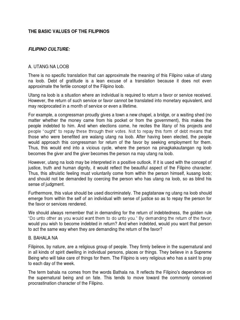 What Are The Negative Consequences Of Filipino Values Kabutihang Loob Utang Na Loob And Pakikisama Quora