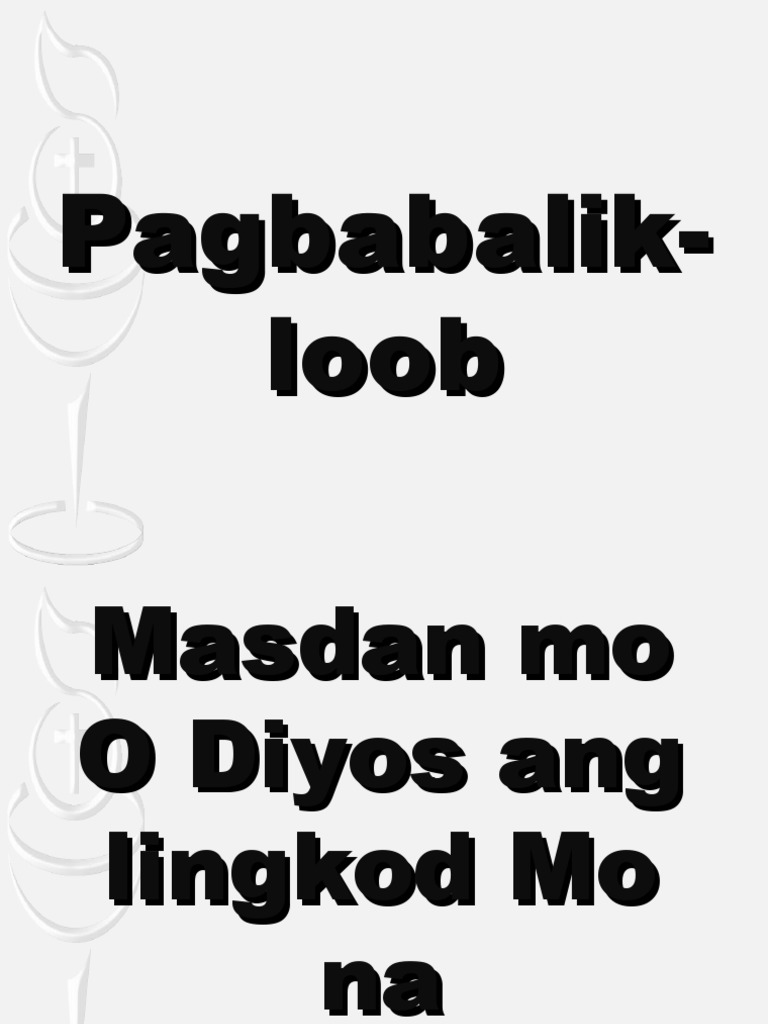 English words for pagbabalik-loob include conversion and revertive. Pagbabalik-loob Masdan mo O Diyos ang lingkod Mo na nagbabalik Bagamat di marapat ay dumudulog saYo Upang matugunan tawag Mo. Ngayong panahon ng Kuwaresma tayong lahat ay manalangin magsisi at tumalikod sa.