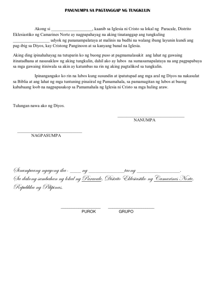 Panunumpa Sa Pagtanggap Ng Tungkulin