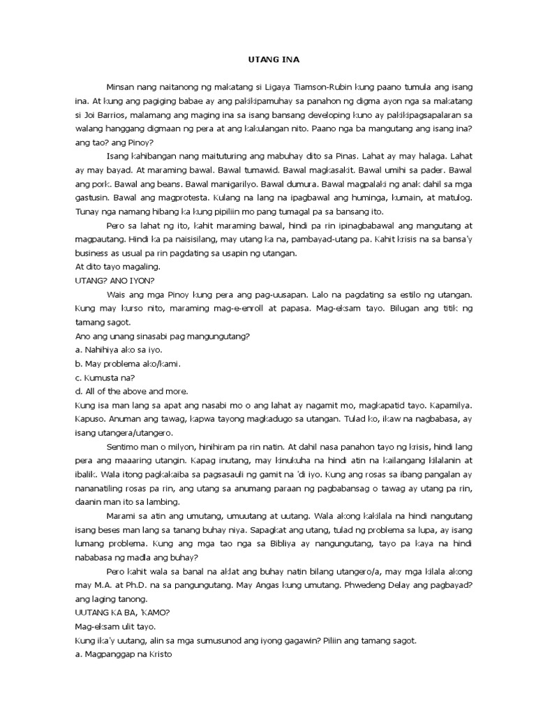 Hindi yun UTANG NA LOOB ng anak nyo Dear Parents Wag naman kayong harsh sa mga anak nyo pinagaral at pinalaki nyo sila dahil obligasyon nyo yun di naman yun utang na loob. Prose prompt evaluate the sample essays peer editing. Whats not okay is parents expecting for their child to dedicate their life to them.
